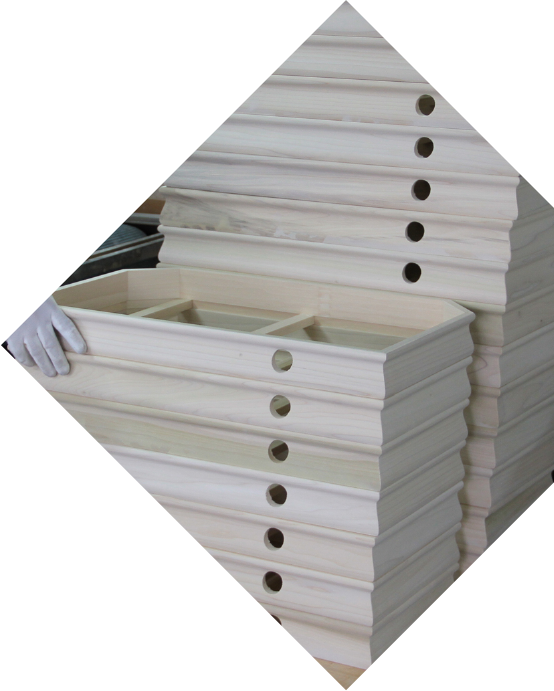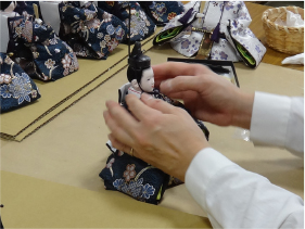 四国民芸では、自社内での生産体制を整え、熟練の職人が手作業で一つ一つ木工から製造を行うことで、高品質かつ、お客様の細かいご要望にお応え致します。またケースの製造のみではなく、人形の製造(組立て)も含めたトータル的な商品開発・販売を行っています。